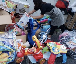 リサイクルショップで子供服や自転車・文具・玩具等を仕入れてクリスマスに現地の恵まれない子供達にチャリティー品としてプレゼントされる様に発送完了しました。