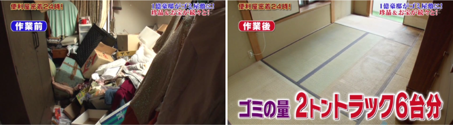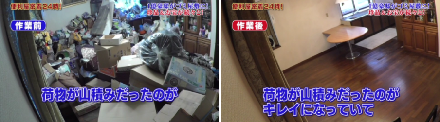 汚部屋・ゴミ屋敷・ゴミマンションも遠慮なくお任せください!年間約100件の経験と実績、資格を持ったスタッフが収納のアドバイスもさせて頂きながらクリーニングを行います!